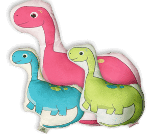 כרית בצורת דינוזאור מתוק גובה כ-20 סמ'. דו"צ. מגיעה עם מילוי אקרילן.