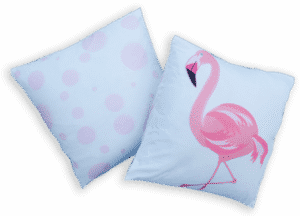 כרית עם דפוס פלמינגו על רקע לבן.