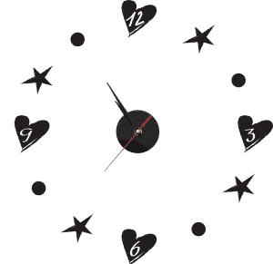 שעון קיר מתקתק בעיצוב לבבות וכוכבים. לחדרי ילדים, לסלון ולמסדרון.